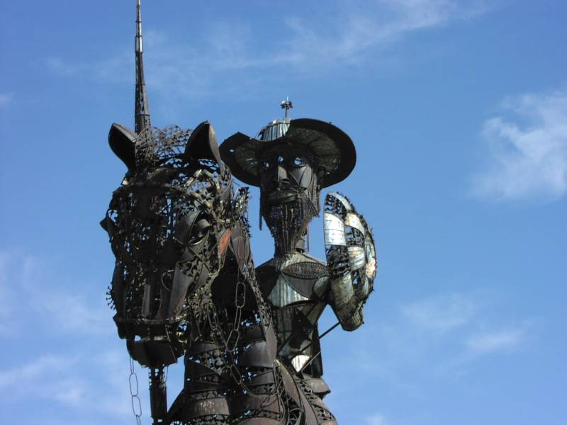 Don Quixote In front of a maquiladora in largest industrial park in Chihuahua. The sculpture was made from scrap metal by local artisans.