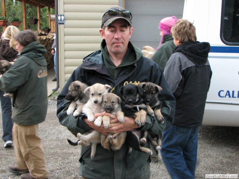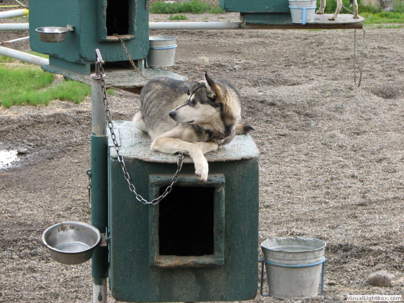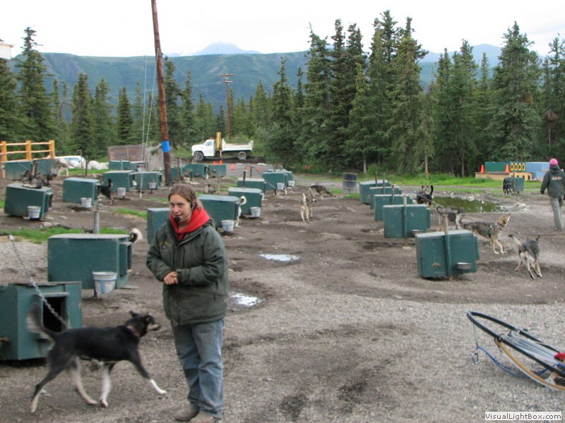 Hooking the huskies to a 4-wheel ATV that is used to train the dogs