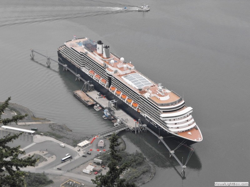 Looking down on the islet with the ships