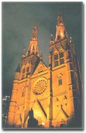 front facade, it is more reminiscent of a French cathedral, with twin towers