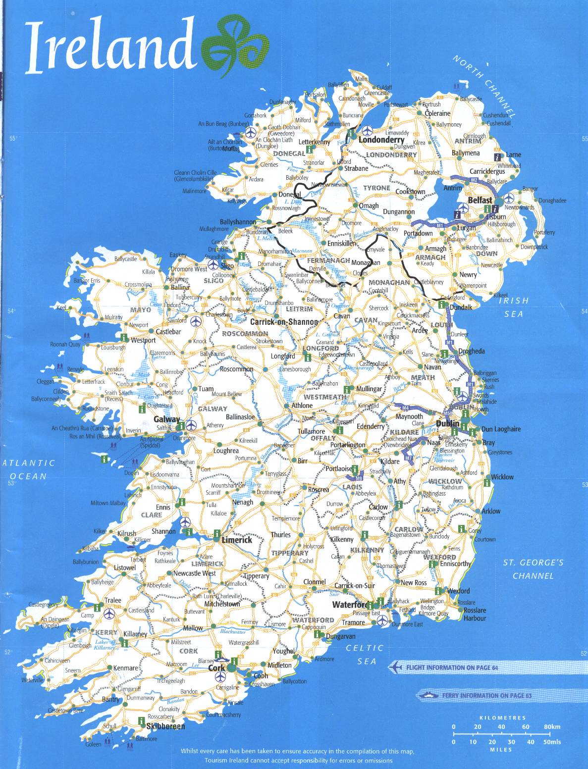 We crossed the River Erne to enter the Republic of Ireland. After crossing the Benbulben plateau we stopped in the town of Drumcliff, and at St. Columba's Church just outside town. We spent the night at Sligo. Arriving early enough gave us some time to visit the central area of town and visit the Immaculate Conception Church and walk along the River Sligo. The next morning our first stop was the village of Knock. Knock attracts pilgrims from all over the world since the townsfolk saw apparitions on a church wall. We then headed to Galway, the city of 12 tribes. Since every town has a castle, Galway had Dunguire Castle on Galway Bay. It dates from the 1500s. Next we drove by the Burren Hills with their natural radioactive limestone. On the way to Limerick we saw one of the most spectacular sites in Ireland. The 668 foot Cliffs of Moher. We spent some time hiking to the top and taking lots of pictures. Limerick, is the 3rd largest city in Ireland - population about 100,000. We stayed overnight at the 2-mile Hotel - seems you had to be 2 miles outside town to drink on Sundays, so lots of establishments just outside the 2 mile radius. The next day we saw some of the sites in Limerick and then we were off to Adare - a great town with thatched roof cottages. Nearby was one of the only 5-star resorts in Ireland - the Adare Manor. Traveling we saw lots of sheep, cows and horses. Seems this is diary country with mostly 30-40 acre family-owned farms. As we approached the Dingle Peninsula, we had about an hour of light rain. The edge of the peninsula is the most western point in Europe. We stopped in Dingle for lunch and wandered around the harbor with its many fishing boats. The peninsula road was only one-lane in many places. Some sites we saw were the Bee Hive Huts, the Inch Strand - a surfing and bathing beach with some great scenery and the offshore Blasket Islands on the 32 mile Slea Head Drive. We stayed for 2 nights in Killarney - our hotel was a short walk into the center of the old town. After a good night's rest we were off to Killorglin, got to walk on a peat bog, then on to join the 100-mile coastal road known as the "Ring of Kerry." It offers sparkling seascapes, mountains dotted with farmhouses, winding lanes with subtropical vegetation, and spectacular views of the Lakes of Killarney. We had lunch in the town of Cahersiveen on the Kerry Peninsula. Kenmare Bay was on the south side of the peninsula. We also stopped in Sneem with brightly painted houses and the river right in the middle of town. The next morning we visited Blarney Castle and its Stone of Eloquence - John even kissed the "Blarney Stone." After lunch we were off to Youghall where the movie Moby Dick was filmed in 1954. It's other claim-to-fame is the site where Sir Francis Drake planted the first potato field. The town's clock tower dates from 1777. We stopped at a viewing point overlooking Dungarvan Bay for pictures of the Irish Sea and south-east Ireland. In a nearby town we stopped at a private house known as the "Shell Cottage." The lady used shells to decorate the entire outside of her small home. She was married to a sea captain and the shell project kept her busy while he was gone. That night we stayed in the Majestic Hotel in Tramore. Our room overlooked the Irish Sea - very nice. The next morning we headed north to Enniscorthy with Ferns Castle remains and then on to Avoca in the Wicklow Mountains. A short distance away was the Meeting of the Waters where two rivers converged to form the River Avoca. For lunch and a little hiking, we stopped in Glendalough Park and Powerscourt Valley in the Wicklow Mountains. By that evening we were in Dublin, population 1.5 million. Our hotel, the Jurys Inn Custom House, was on the river and in the financial district. We spent 2 nights in Dublin. This gave us a chance to do our laundry. Interesting talking with the lady at the launderette. She immigrated from the Ukraine about 8 months ago, was working in Dublin to earn enough money so she could return home, pick up her son, and then immigrate to either America or Australia. She was in Dublin because it's easy to enter without proper papers. Her son was staying with her mother in the Ukraine (says no work in the Ukraine) and her husband was a looser. The next day was a full day to explore Dublin. Some highlights were: Oscar Wilde statue in the park, Merrian Square, National Gallery, Parliament House, Georgian Houses, St. Stephens Square, St. Patrick's Cathedral (Church of Ireland - Protestant). In the afternoon we went to Trinity College to see the Book of Kells (lavishly decorated copy of the 4 gospels produced by monks in the 9th century), visited Christ Church Cathedral (also Church of Ireland), walked past St. Anne's Church and went with the flow of crowds on O'Connell and Grafton Streets. Had some great food in a small restaurant on the main street. The next morning, April 21, we only had a short drive to the ferry boat dock to board the largest car carrying ferry in the world - the Ulysses. |