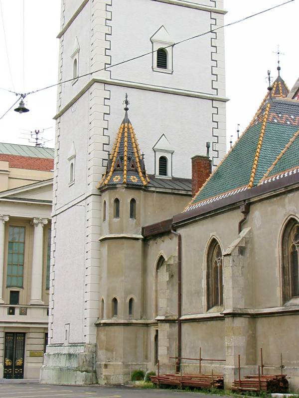 St. Mark Square is the center of the Upper Town. The town parish church of St. Mark was built in the mid-13th century. The church of St. Mark was reconstructed in Gothic style by the architect Herman Bollé between 1876 and 1882. The picturesque roof featuring coats of arms of the Triple Kingdom of Croatia, Dalmatia and Slavonia, and the city of Zagreb date back to that period.