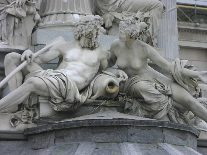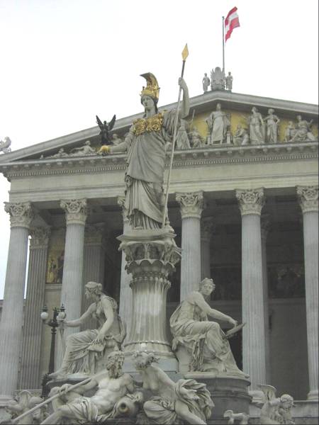 Pallas Athena Fountain in front of it; this 15-foot figure of the Greek