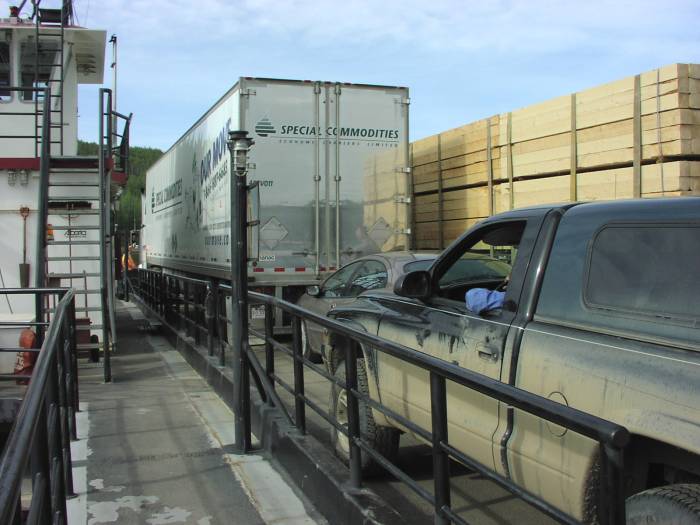 Vehicles jammed on ferry