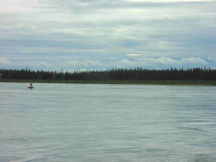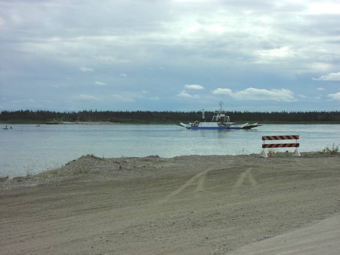The Mackenzie River ferry crossing takes about 10 minutes. In winter an ice bridge is built, but there are periods in spring and winter when no crossing is possible.