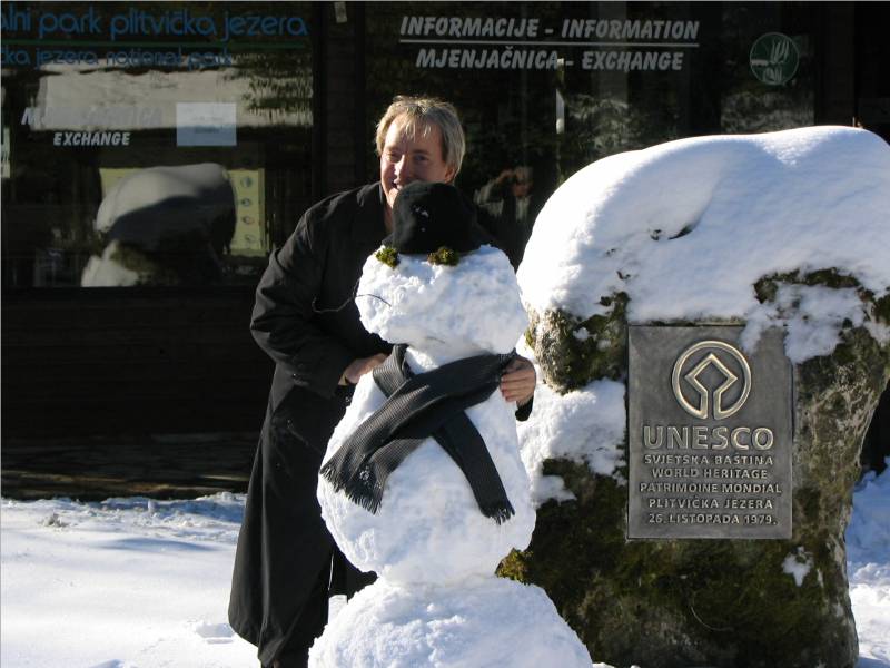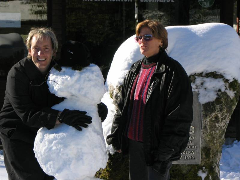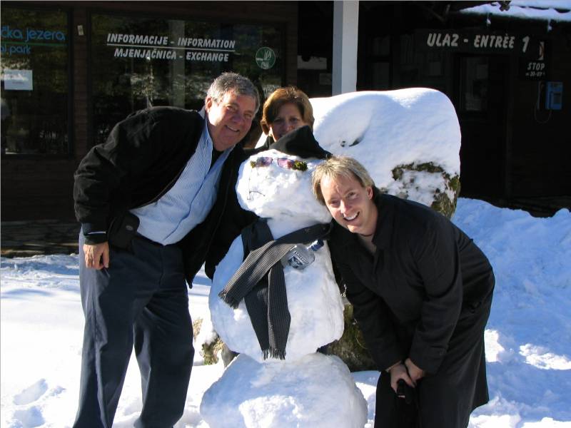 Mark and Birdie building a snowman in front of Hdq while the group was being told about the park