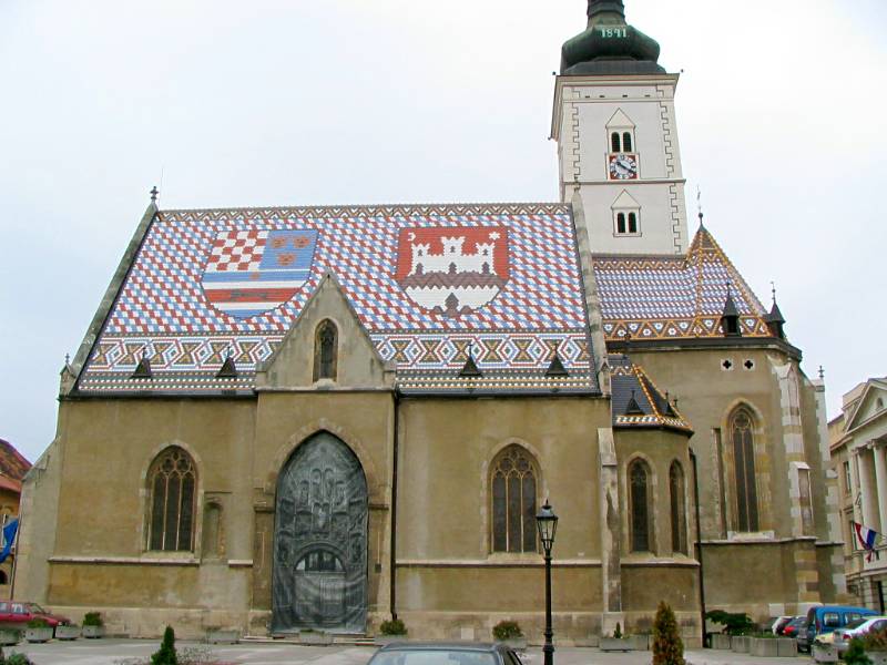 St. Mark Square is the center of the Upper Town. The town parish church of St. Mark was built in the mid-13th century. The church of St. Mark was reconstructed in Gothic style by the architect Herman Bollé between 1876 and 1882. The picturesque roof featuring coats of arms of the Triple Kingdom of Croatia, Dalmatia and Slavonia, and the city of Zagreb date back to that period.