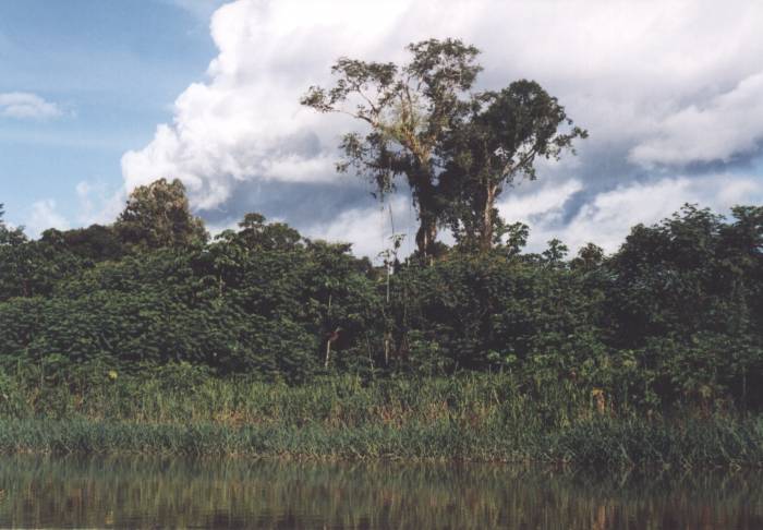 Less dense jungle along a tributary