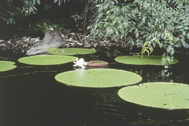 Large Lilly pads on black water stream