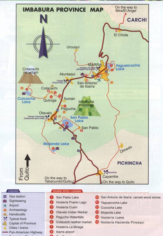 We traveled to most places with numbers on the map The red line is the Pan-American Highway - goes from Alaska to Chile The place we stayed was Hacienda Cusin - number 3 on the map