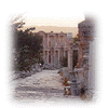 In mythology the curates were demi-gods, a name which was used for a priestly class in Ephesus. They formed the largest cultic union in the city. The street that took its name from the curates leads down to the Celsus Library. Because it is the central street in the city there are many monumental edifices that face onto the street. There were mosaics and galleries of columns on either side of the street. These galleries led into shops and homes. Some of the column pedestals bore inscriptions reminding citizens of those who had helped the city. For example there was a statue next to the Gate of Heracles to the doctor Alexandros. The statue of Consul Stephanos on display in the Ephesus Museum was found on this street. The street was paved with marble and had a well-developed sewer system underneath.
