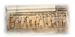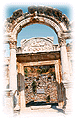 One of the most attractive structures in Ephesus. This was a marvelous structure on Curate's Avenue. In was erected in 138 at the latest. It forms a simple naos structure with a plain monumental pronaos. At the front of the pronaos are four Corinthian columns with triangular capitals. There was an arch over the two central columns. In the center of the arch was a bust of the city goddess Tyche. The lentils of the temple door were