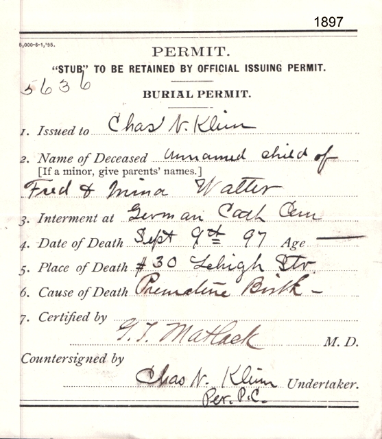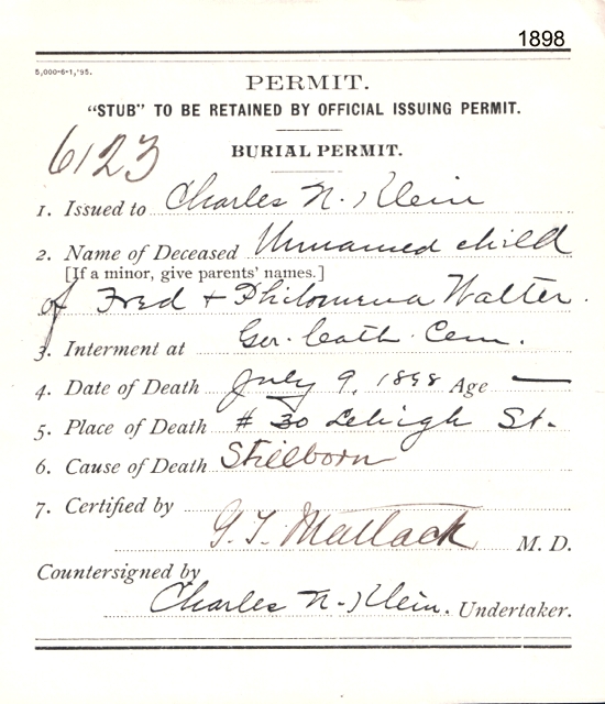 6 v. Frederick Walter was born in Jan 1866 in Pennsylvania. He died on 16 Jun 1945. Frederick Walter married Philomena E. Entler on 23 Jun 1891. Frederick Walter and Philomena E. Entler had 10 children; the following know children: